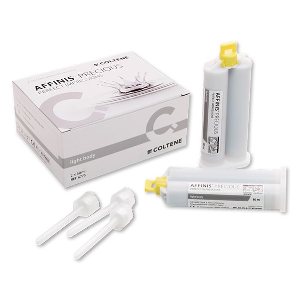 Otiskovací hmota s vynikající přilnavostí namíchaného materiálu k vlhkému povrchu zubů a sliznic s velmi přesnou reprodukcí i těch nejjemnějších detailů. Její schopnost slučovat se s vlhkým povrchem usnadní práci v zubní laboratoři při odlévání otisku sádrou. Materiál je optimálně tixotropní a je odolný proti poškození otisku při jeho vyjímání z úst. Affinis je možné sterilizovat v autoklávu při 134 °C bez jakékoliv změny fyzikálních vlastností. Affinis Precious je poslední generace wash materiálů s vylepšenými flow vlastnostmi a jedinečnými barvami (stříbrná – light, zlatá – regular) pro lepší čitelnost otisků. Dodává se v ručně míchatelné verzi nebo v pevných kartuších (System 360) pro míchání v přístrojích pro otiskovací hmoty.