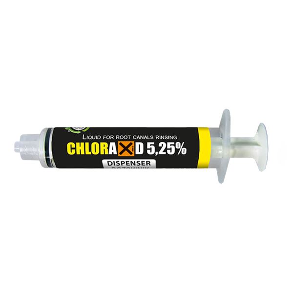 5,25% roztok chlornanu sodného na vyplachování, čištění a dezinfekci kořenového kanálku během a po endodoncii. Balení: 1x 400g, 1x stříkačka