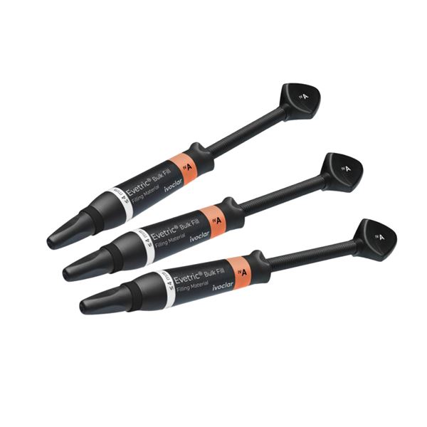 Evetric Bulk Fill je světlem tuhnoucí, modelovatelný nanohybridní bulk kompozit s RTG kontrastními vlastnostmi, určený k dosažení přirozeně estetických výsledků v posteriorním úseku chrupu. Je vhodný pro ošetření kavit I. a II. třídy.