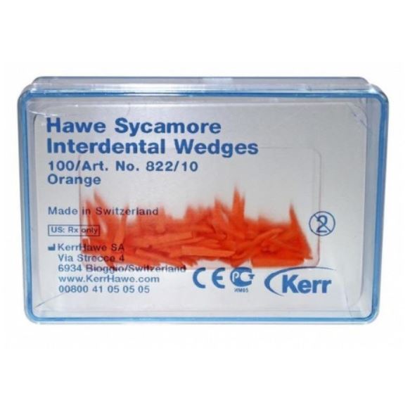 Hawe interdentální klínky vyrobené z platanového dřeva, které neuvolňuje třísky. Mají anatomicky optimální tvar, konkávní strany se perfektně přizpůsobují tvaru mezizubního prostoru. Čtvercové zakončení umožňuje snadné vsunutí klínku a vzhůru směřující hrot zabraňuje poškození papil.