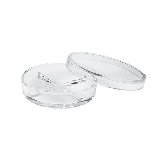 Různé typy a rozměry Petriho misek. Misky Becht jsou vyrobeny z čirého skla odolného vůči náhlým teplotním změnám. Lze je sterilizovat v autoklávu.