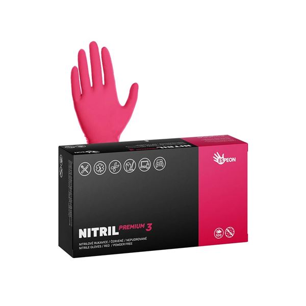 Nitrilové rukavice NITRIL PREMIUM3 vel.S 100 ks, nepudrované, červené, 4.0 g