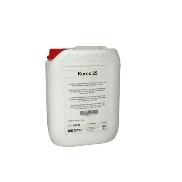 Aluminiumoxid o čistotě 99,6 %. Používá se na pískování odlitků z drahokovových i nedrahokovových slitin. Zrnitost 250 µm (nejhrubší). Balení: 8 kg