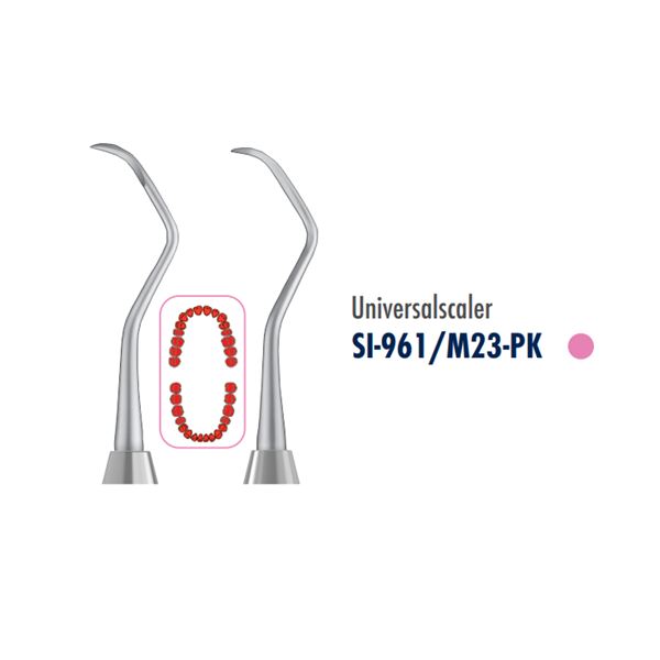 Speciální sada mezizubních scalerů v atraktivní, růžové barvě. Ergonomická rukojeť, strukturované úchyty ručky zajišťují stabilní držení nástroje, dvojité (oboustranné) zakončení, vhodné pro termodezinfekci a autoklávy, splňuje normy dle DIN EN ISO 17664, růžová barva.