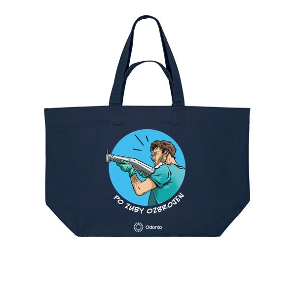 Taška velká modrá s potiskem "Po zuby ozbrojen"