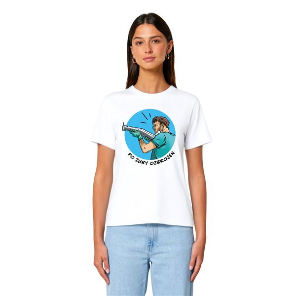 Tričko dámské krátký rukáv bílé s potiskem "Po zuby ozbrojen" vel. M
