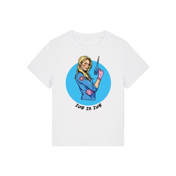 Tričko dámské krátký rukáv bílé s potiskem "Zub za zub" vel. L