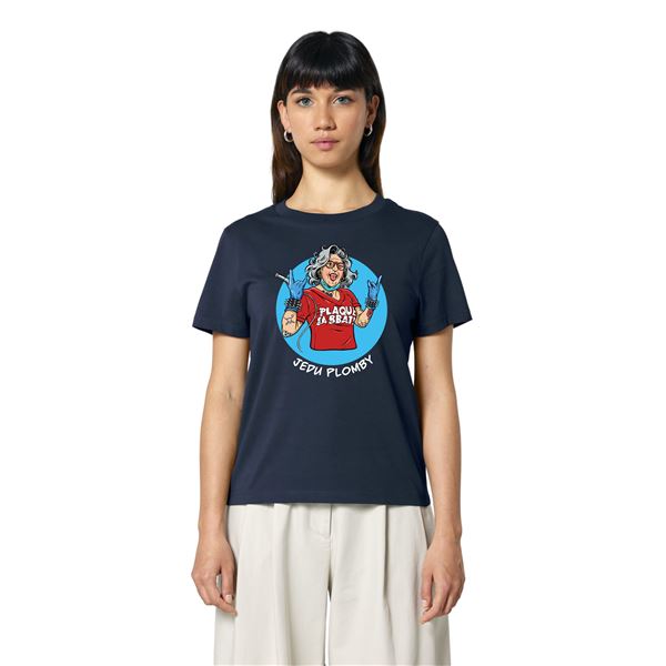 Tričko dámské krátký rukáv modré s potiskem "Jedu plomby" vel. S