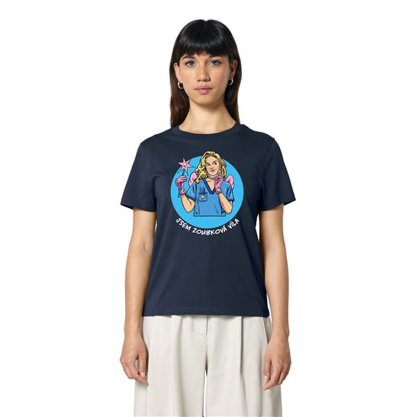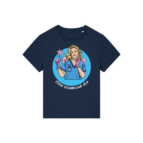 Tričko dámské krátký rukáv modré s potiskem "Jsem zoubková víla" vel. M