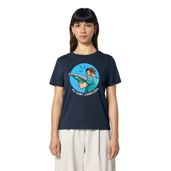Tričko dámské krátký rukáv modré s potiskem "Po zuby ozbrojen" vel. XL