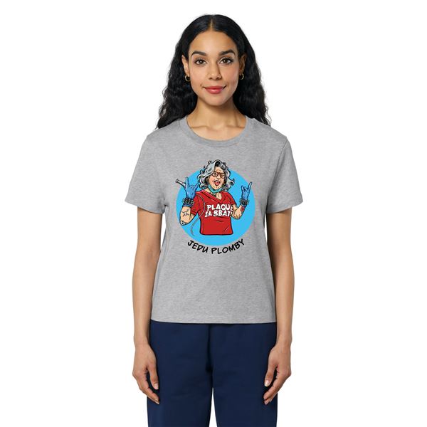 Tričko dámské krátký rukáv šedé s potiskem "Jedu plomby" vel. M