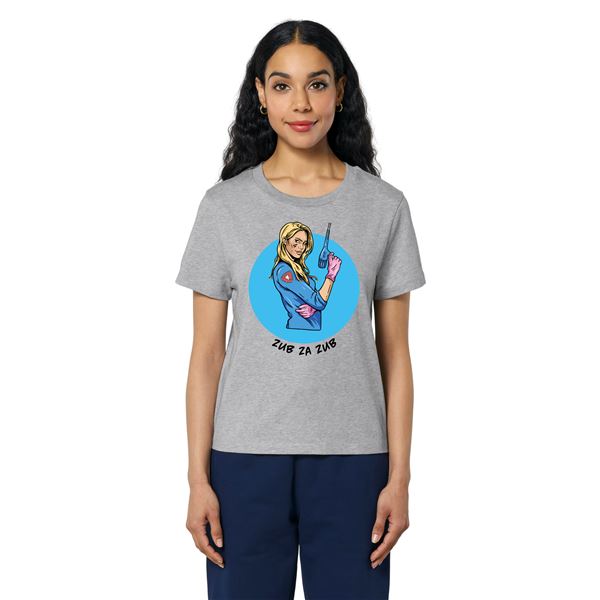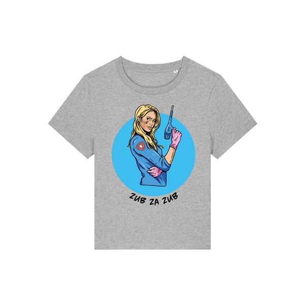 Tričko dámské krátký rukáv šedé s potiskem "Zub za zub" vel. S