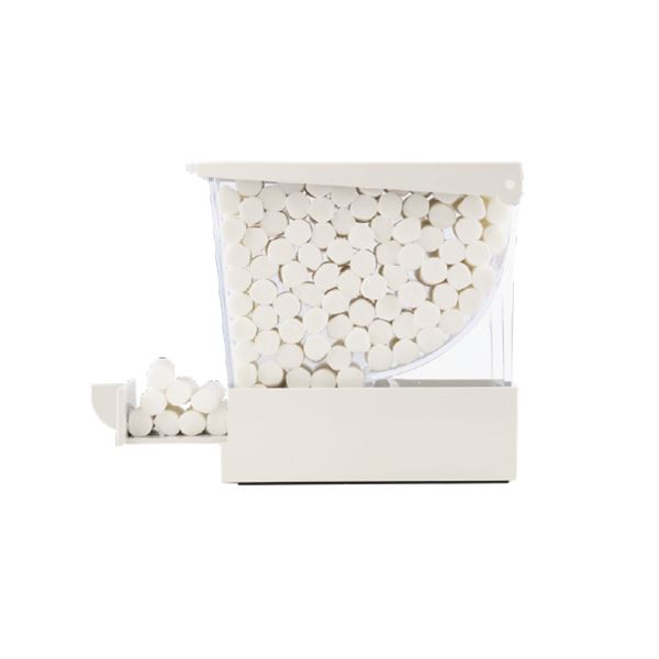 Jednoduchý plastový zásobník pro hygienické skladování vatových válečků. Zásobník se dodává v bílé nebo modré barvě.